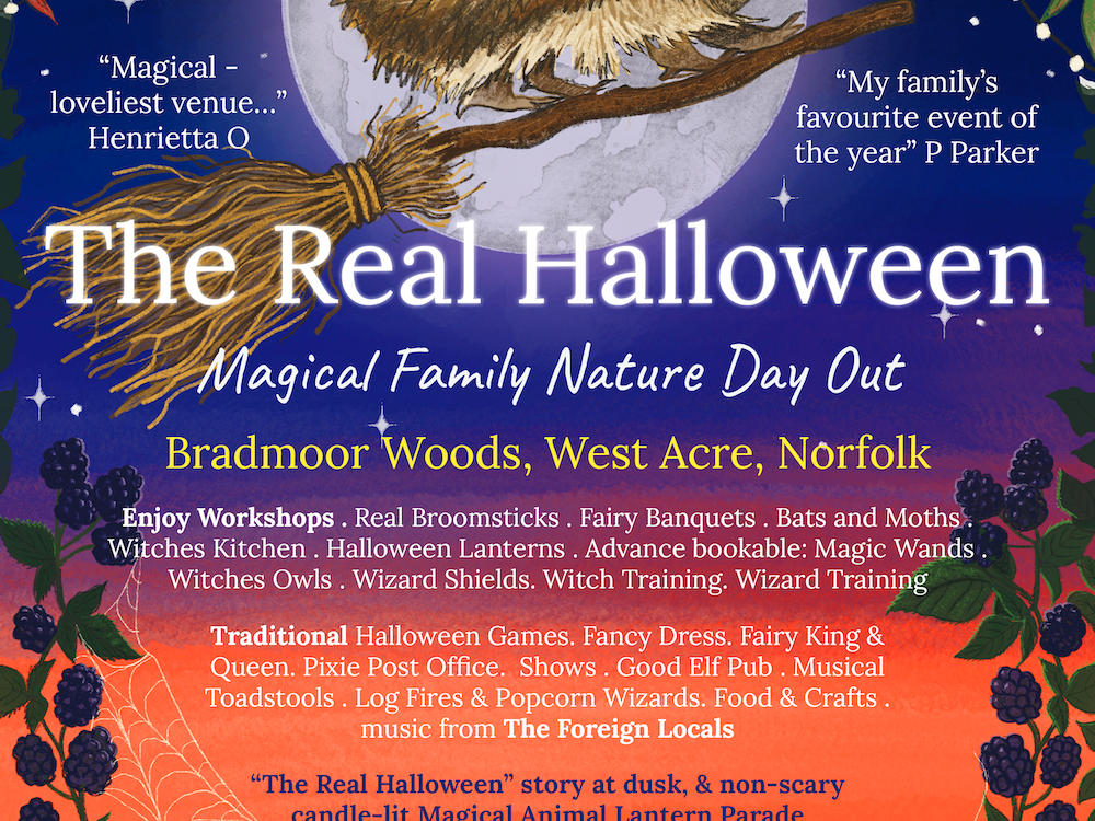 Set in a woodland glade deep in the Norfolk countryside, The Real Halloween is a true celebration of autumnal magic. It has music, log fires, traditional games, magical nature workshops, storytelling (including our own Story of The Real Halloween at sunset), food and drink, as well as a candle-lit magical animal lantern parade.